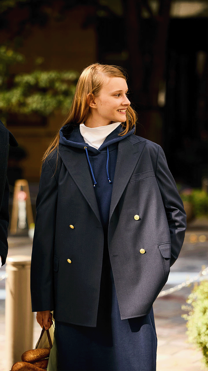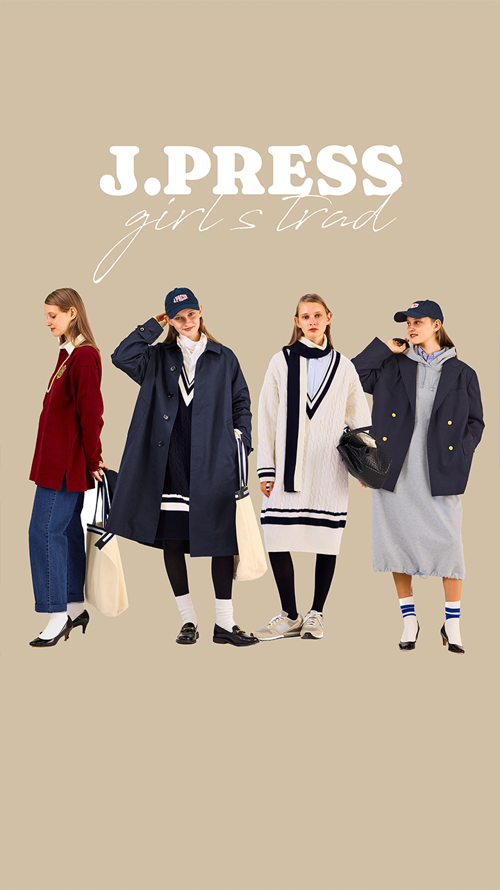 《J.プレス オリジナルス》から、モダンなトラッドスタイルを作るのに欠かせないキーアイテムをピックアップ。ネイビーブレザー、ダッフルコート、チェックのスラックスなど、どれもガールズトラッドを盛り上げてくれるアイテムばかり。