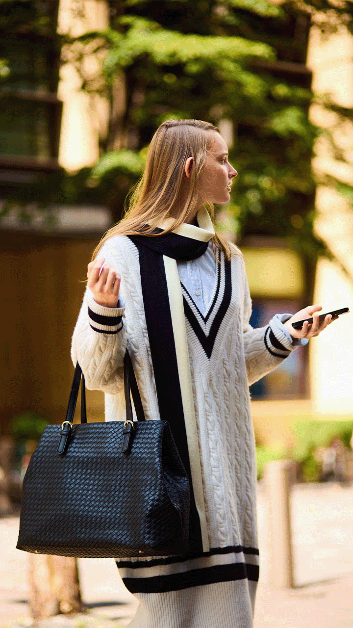 IVYリーグなどに代表されるスクールマフラー。ほど良い肉厚感のあるニット素材にアレンジしており、いつものコーディネートに合わせるだけでトラッドな雰囲気が生まれる。