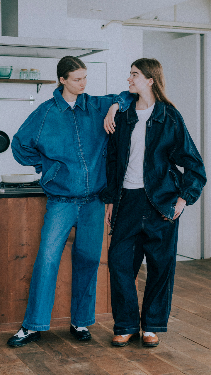 11オンスのデニム素材を使用したユーティリティーパンツ。裾にむかって真っ直ぐ落ちるストレートシルエットで、ウエストは後ろにのみゴムを入れたイージースタイルだから楽チン。