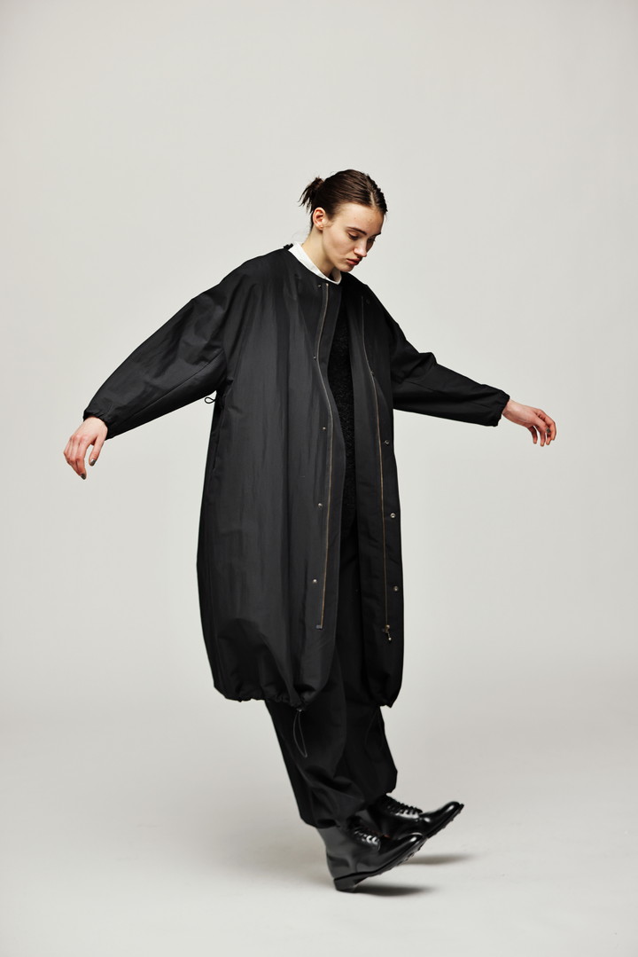タックの入ったボリュームのある袖が可愛いミリタリーディテールのコート。スーピマコットンとドライタッチナイロンを組み合わせた、ほど良いハリ感のある素材が特徴。