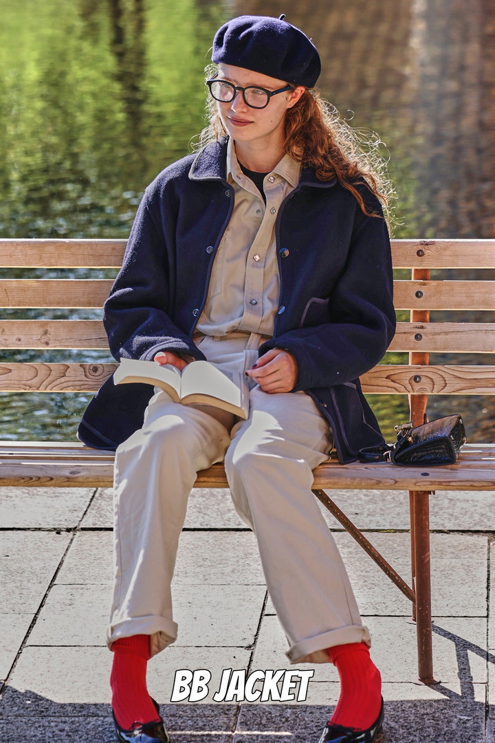 アメリカ東海岸の寒冷地で働く労働者向けの「Beach Jacket」を忠実に再現した「BB JACKET」。《アナトミカ》のムードを纏うことでエレガントな雰囲気に。インナーはベージュのワントーンでまとめて。