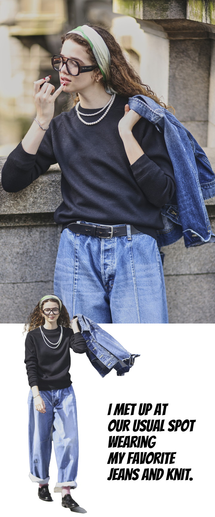 ワードローブにあると心強い黒のニットは、素材や着心地にこだわりたい。《スローン》の一枚は、シンプルながら立体的なフォルムで、装いに奥行きを生んでくれる。パールを重ねづけしたレディなスタイルに、デニムオンデニムで遊び心をプラス。ベーシックだからこそ、長く愛用できる一着を選びたい。