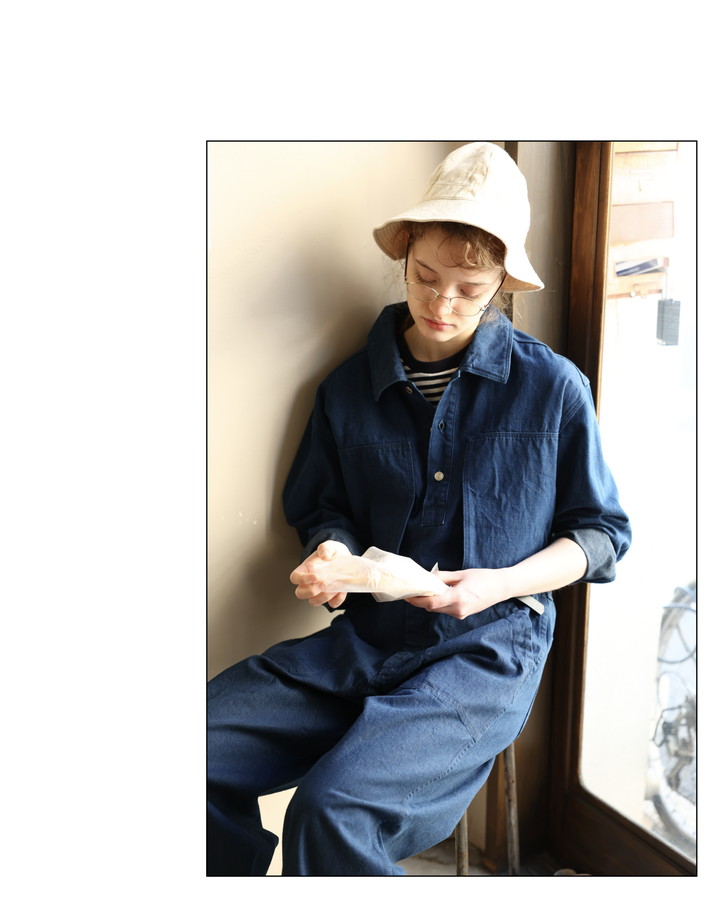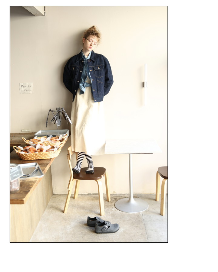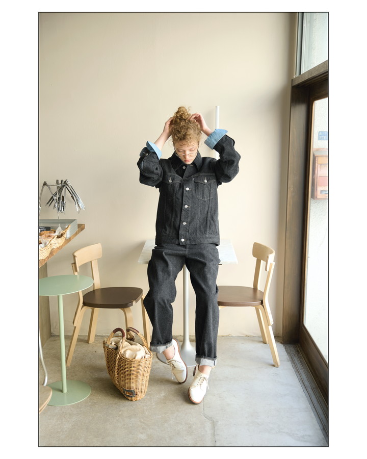 ファッションアイテムと言うより “ワークウェア” なムードを持ったデニムがお好きな彼女。バリッとした質実剛健な生地の質感と、温かみのある手触り、ほっこりした佇まい、こんなバランスのデニムって中々見つからない。
