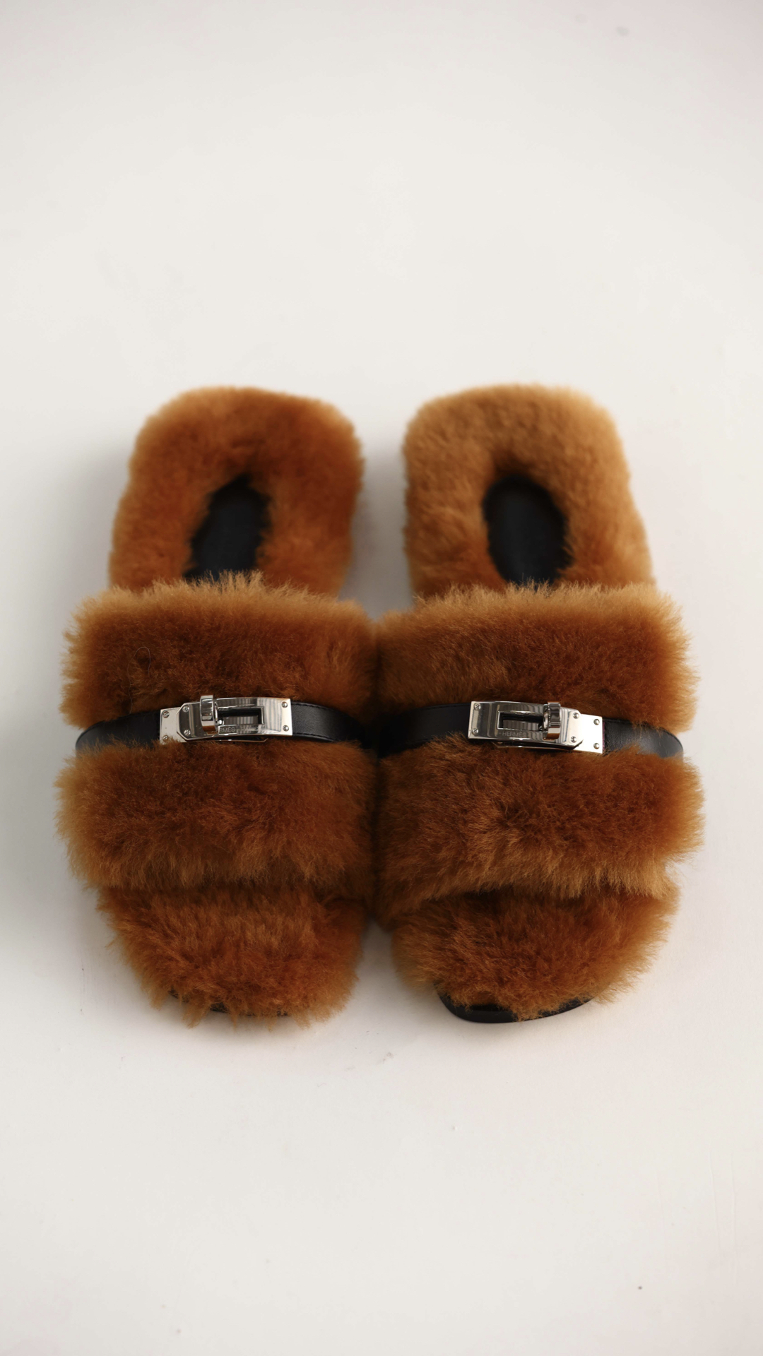 一歩足を入れた瞬間、ふわりと広がる極上のシープスキンの柔らかさ。カジュアルなフォルムながらアイコニックな金具ディテールをアクセントに、リラックスした時間さえスタイルアップしてくれる。シンプルなパンツスタイルにも、秋のニットドレスにも寄り添って、足元から心地よい高揚感を運んでくれる一足。