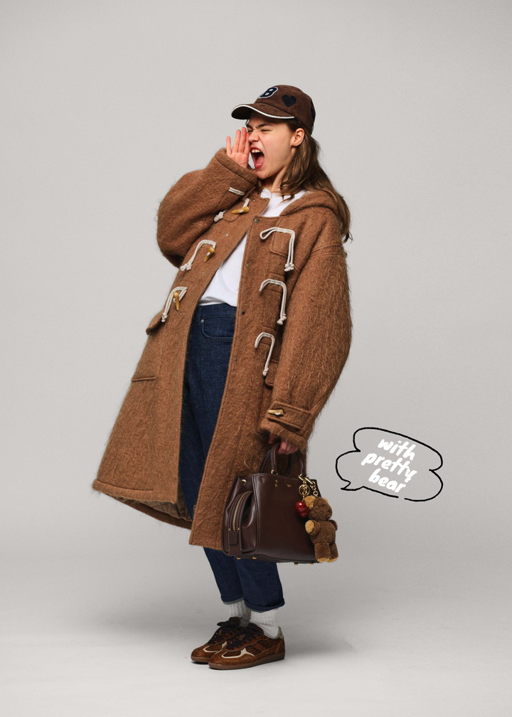 メンズライクなボストンバッグは、上品なレザーの質感がラグジュアリーな雰囲気に。キュートなうさぎのチャームを付ければ、真面目なバッグに抜け感を演出してくれる。冬コーデのアクセントにぴったり。