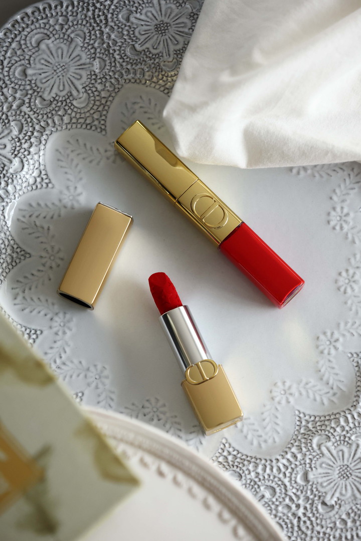 ホリデーシーズンに贈りたい、《ディオール》の特別なレッド。ベルベットのように上品な「ルージュ ディオール」と、グロスを重ねて輝きを楽しめる「シークイン リキッド デュオ」。どちらもひと塗りで雰囲気を変えてくれる、華やかな赤で、自分へのご褒美にも、贈りものにもぴったり。