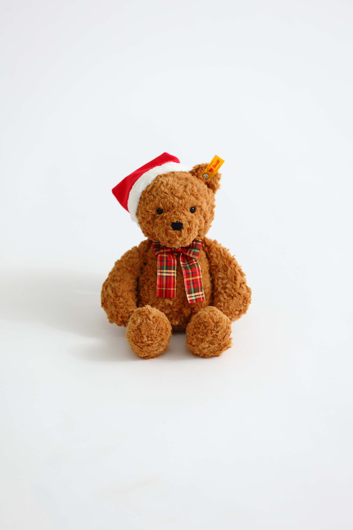 まん丸なお顔とつぶらな瞳が愛らしい、《シュタイフ》のテディベア「ジミー」。クリスマスシーズンに合わせて、サンタ帽とタータンチェックのリボンでおめかし。100年以上ものあいだ受け継がれてきた確かなつくりは、大人になっても心をときめかせる。ギフトにすれば、笑顔まで届けてくれるはず。