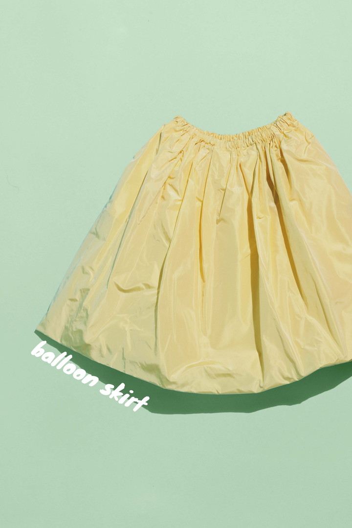 バルーンシルエットのスカートは、シルクのテクニカルタフタ素材で仕立てたエレガントな一着。