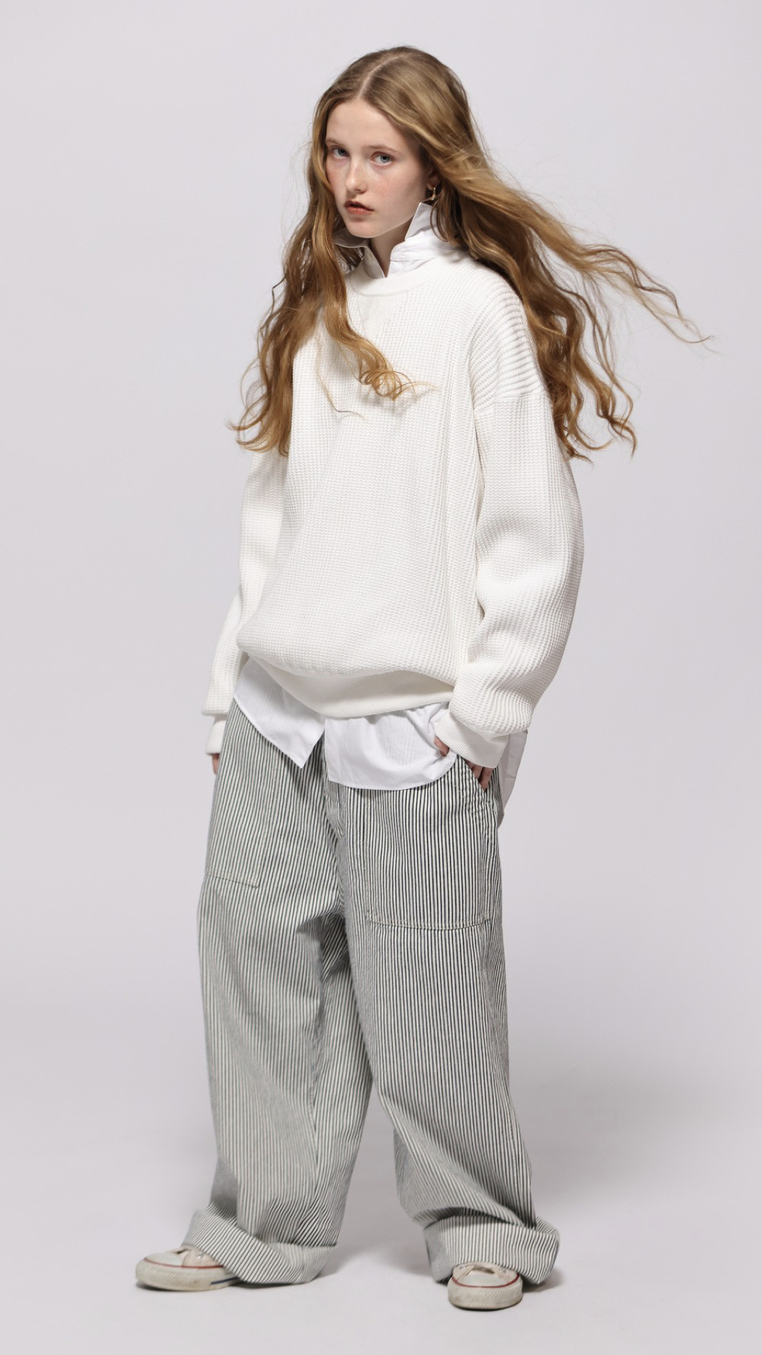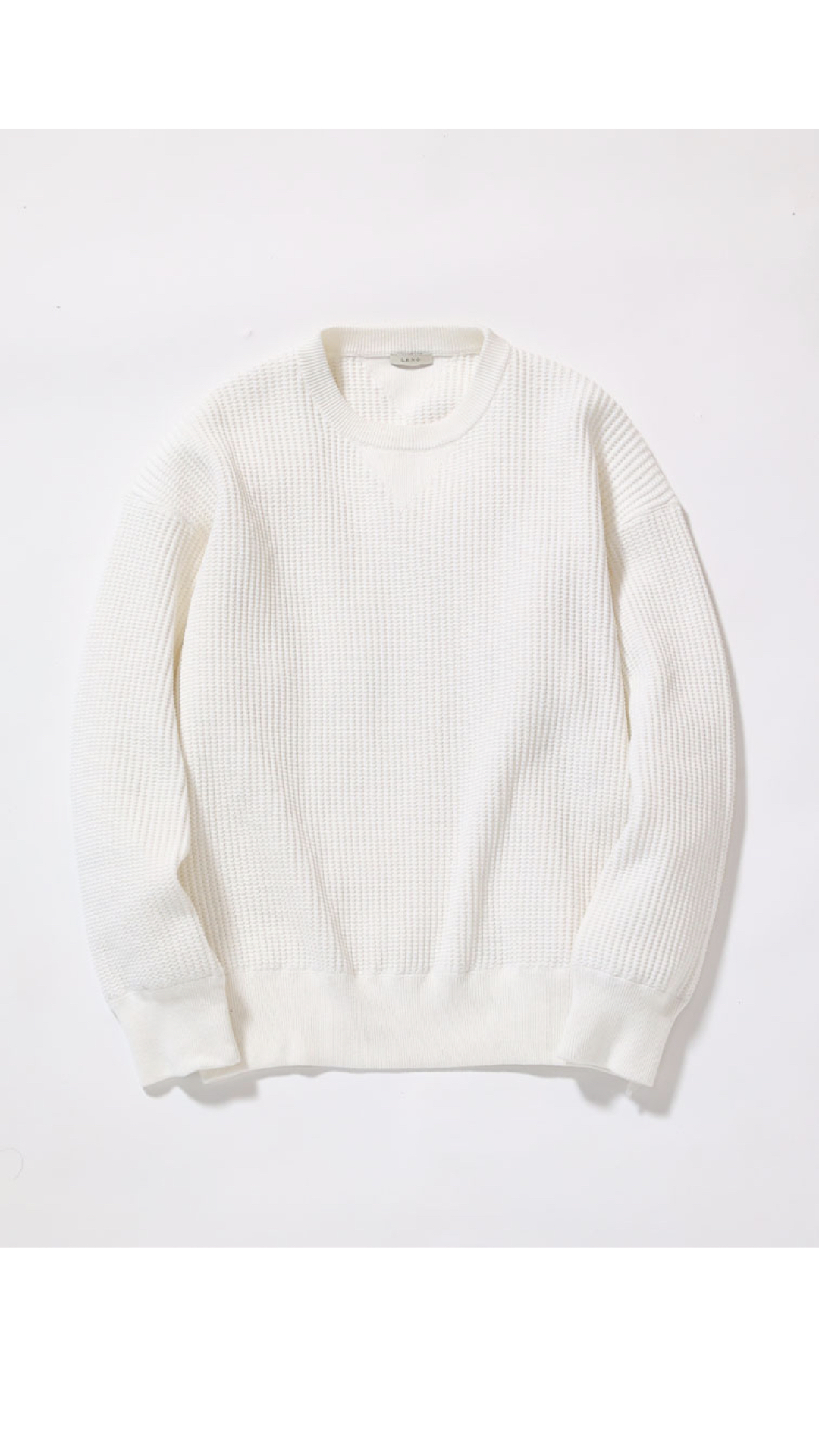 クラシックなサーマルシャツをニットで表現した一着。印象的なワッフルのような素材感を残した、スウェットライクなリラックス感のある佇まいが魅力。