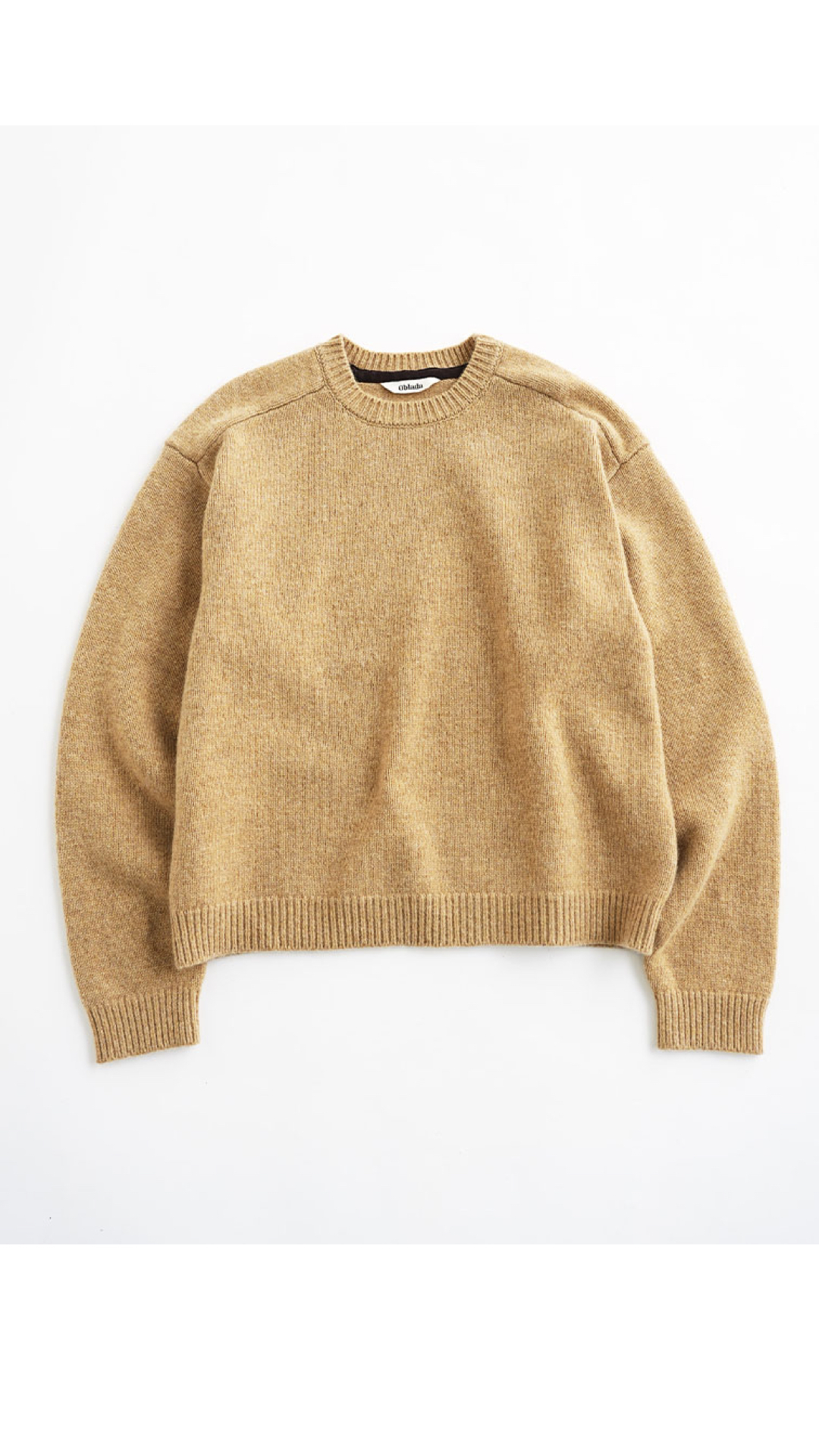 プレーンなアイテムだからこそ、クルーネックの詰まり具合や身巾や丈のバランスなどサイジングにこだわり抜いた、メイドインジャパンの《オブラダ》のニット。