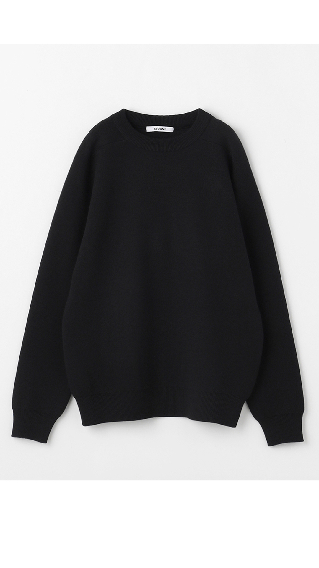 シンプルながら立体的なフォルムで、装いに奥行きを生んでくれる《スローン》の一枚。デイリーなカジュアルスタイルを格上げしてくれる上質な黒のクルーネックを長く愛用したい。