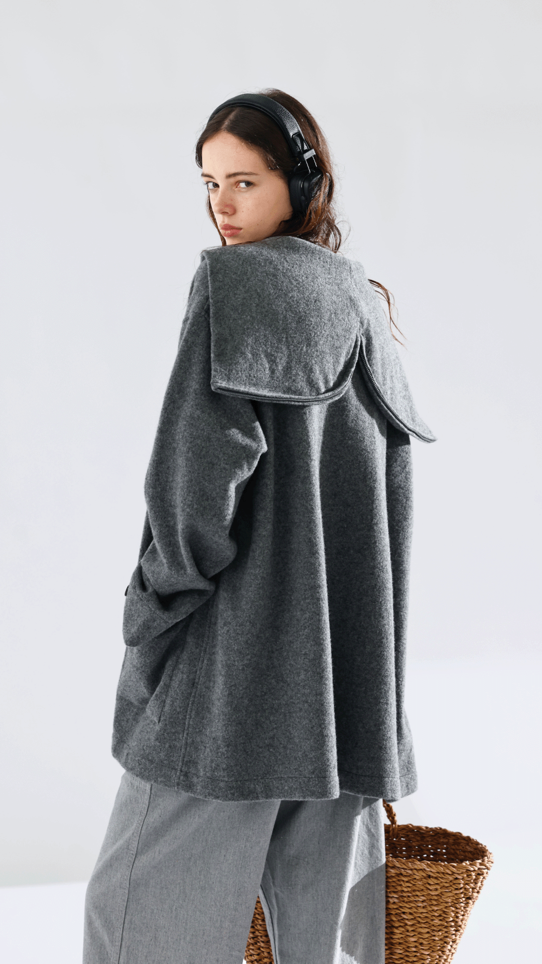 ローゲージの機械で編み、両面を起毛、縮絨させて作るフィルメランジェを代表する秋冬素材のカセンティーノを使用したフードブルゾン。フードのジップを開ければ表情が変わるので着こなしの幅が広がる。
