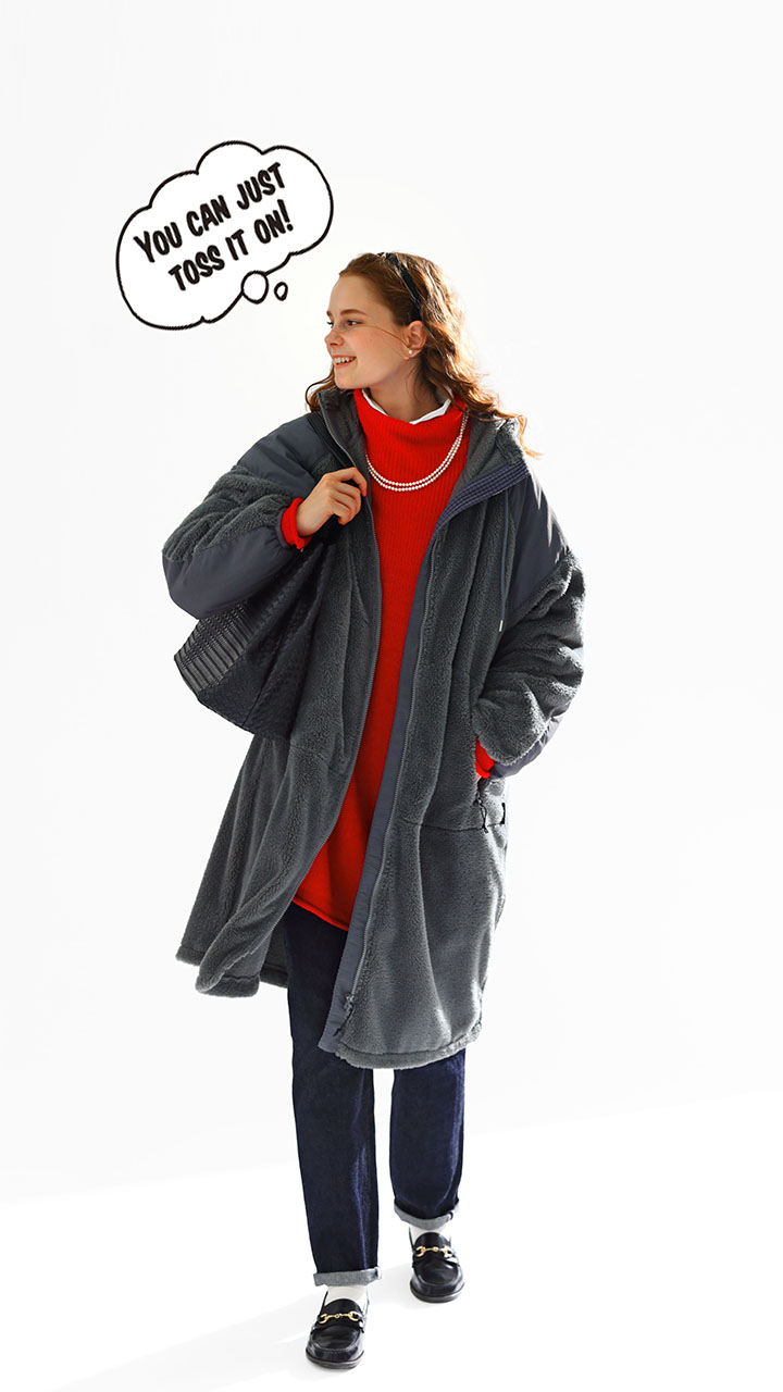 ミリタリーの定番フリースジャケットをベースに、異素材切り替えやドローコードなど、ファッション性の高いディテールへとブラッシュアップし、フーデッドコートデザインに仕上げた一着。リーズナブルなプライスも嬉しい。