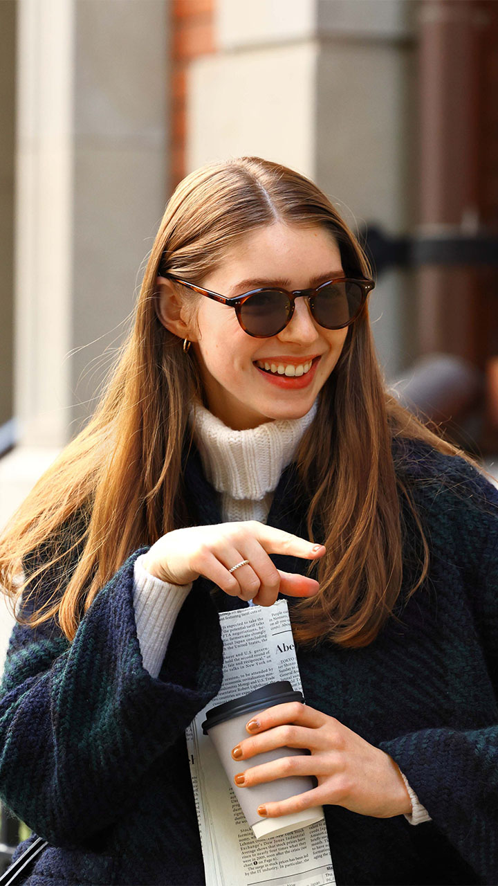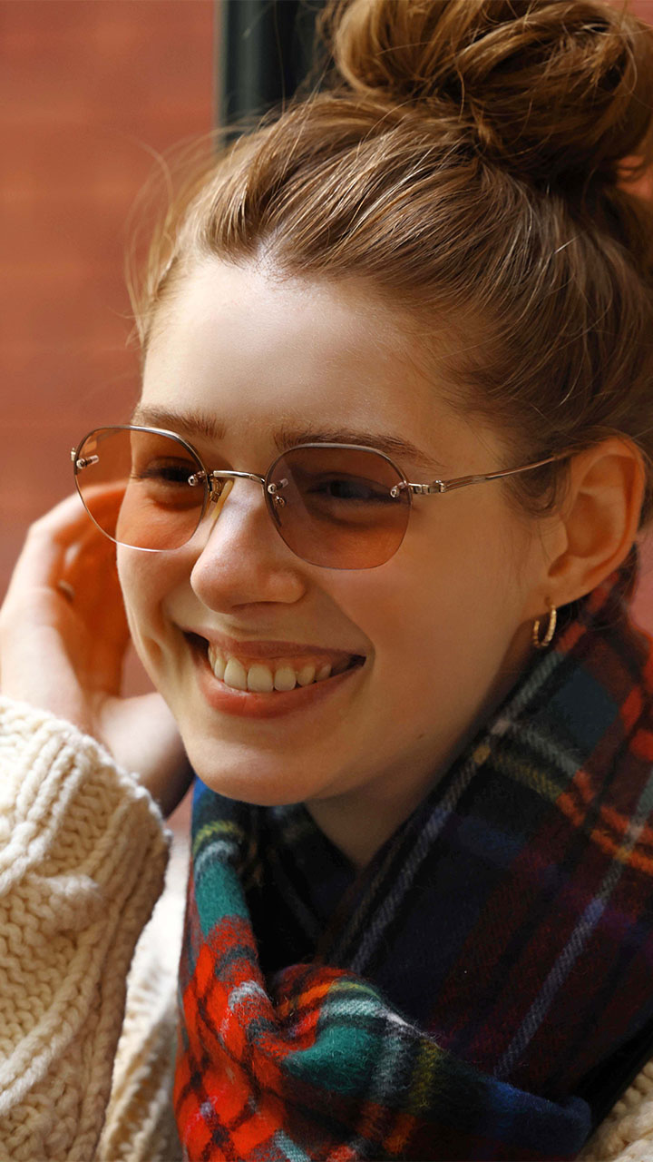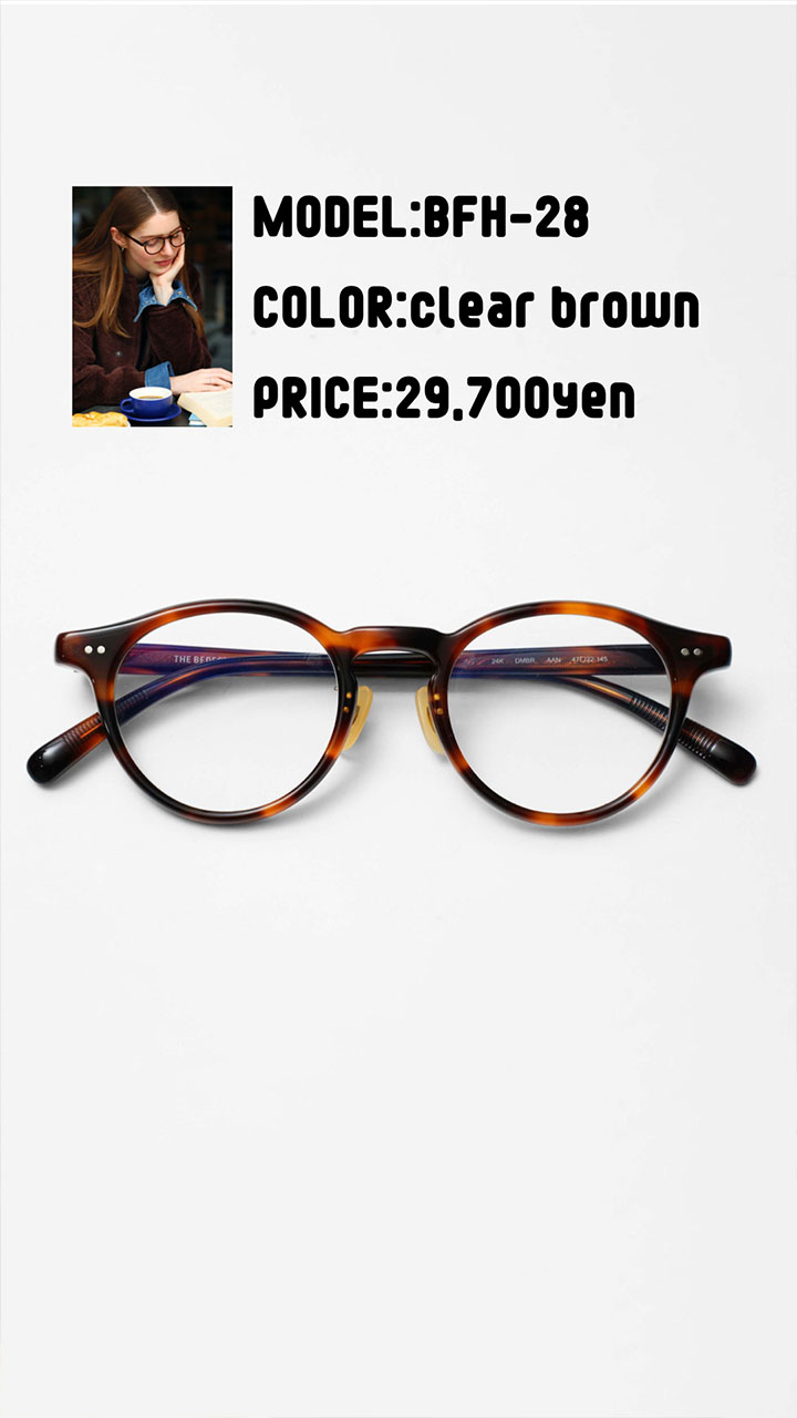 オーセンティックなラウンド。レンズとリム線に挟まったWウィンザーリムによるコンビネーションが繊細なカジュアルクラシックモデル。テンプルは全体の雰囲気に合わせモダンなメタル仕様。ミル打ちによるシンプルな装飾性で質感の高い高級感のある仕上がりに。