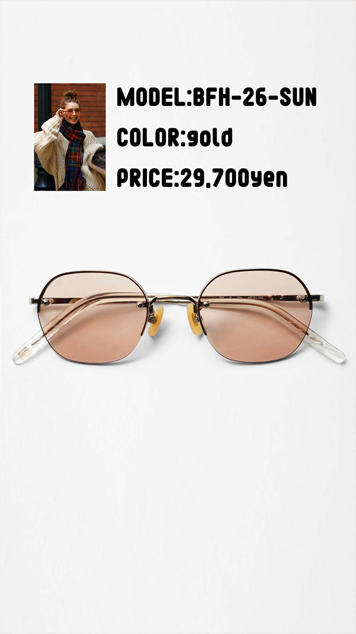 定番ながらトレンドを感じさせる、ヘキサゴンシェイプの日本製ツーポイントフレーム。ツーポイント構造に特徴的なバックバーを施し、モダンな多角形の玉型を採用。 淡いピンクのレンズが可愛い。※こちらの商品は、度付き対応不可。