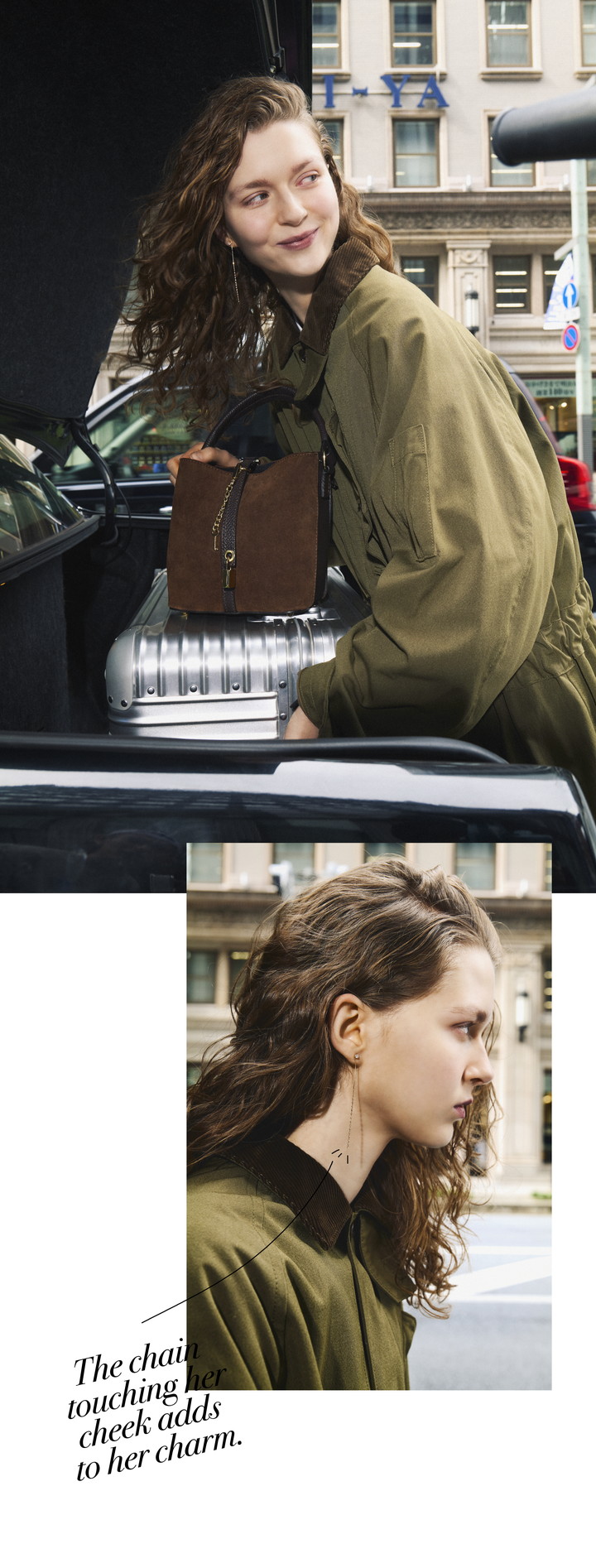 輝きの異なる2種類のチェーンを繋いだシンプルなピアスチャーム。スタッズピアスと重ねて耳元にリズムを添えれば、どんなスタイルにも馴染み、さりげなくオシャレ度をアップ。頬をかすめて揺れる姿が、いっそう可憐。