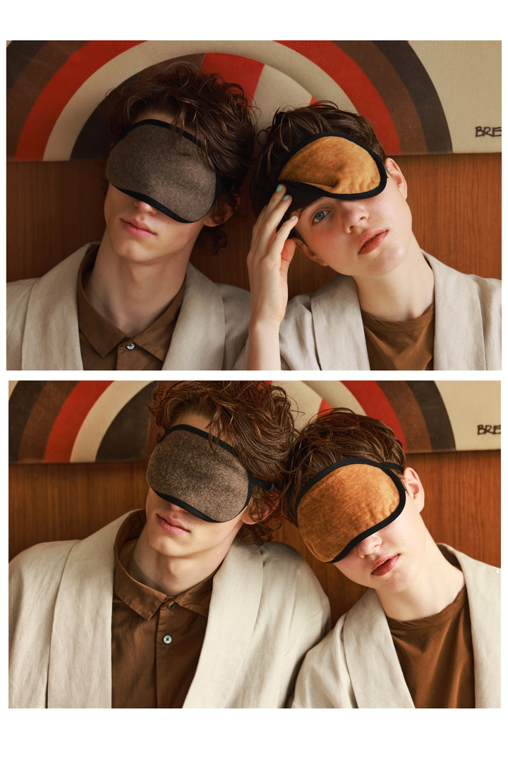 表側にはブラウンコットン、裏側には天然シルクを使用し、ひと晩中目元を優しく包み込むアイマスク。乾燥しやすい冬の夜も、眠っている間にうるおいを保ちながら疲れをほぐしてくれる。シルクのしっとりとした肌触りは、深い眠りへと誘う静かなスイッチに。