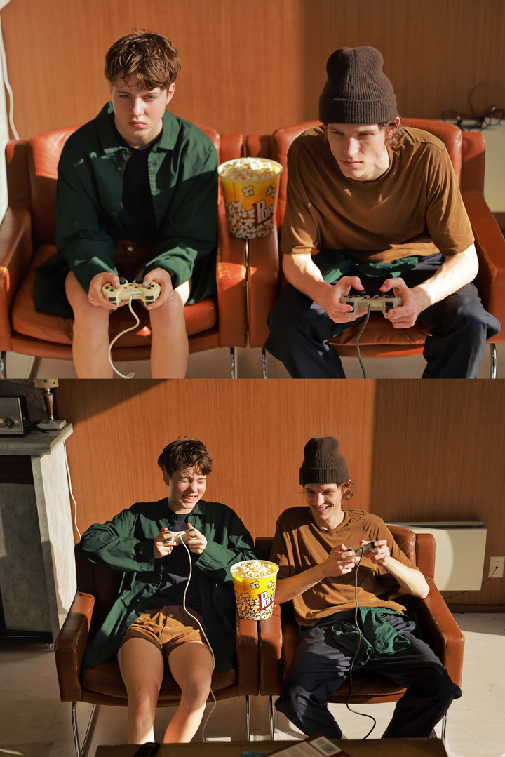 ゆるりとしたフィットが心地良く、完璧なシルエットと、第2の皮膚のような軽さがノンストレスのシルキーなTシャツ。ゲームに夢中なふたりの熱気さえ、そっと受けとめてくれるような柔らかさ。パジャマの上だけ羽織ったり、パンツだけ合わせたり、同素材のボクサーブリーフを、ショーツ感覚で合わせても可愛い。