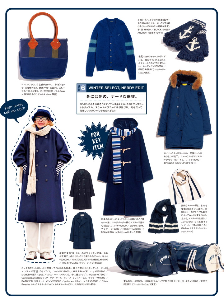 ロンドンの冬を歩けそうなアイテムを揃えたら、自然とモッズコートやダッフル、スクールマフラーに手が伸びる。真冬だって、防寒しつつUKマインドを忘れずに!!