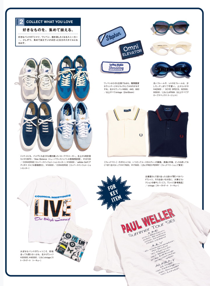 好きなバンドのTシャツ、クールなサングラス、ベタベタとつけたいワッペン、そして履き潰したくなるスニーカー…。少しずつ、集めて揃えていけばきっと自分のスタイルになるはず。