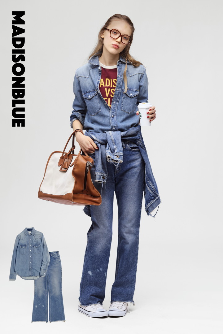 こなれた装いを叶える《マディソンブルー》のデニムアイテム。計算された絶妙な色落ち感がエレガント& ヘルシーな大人の雰囲気を演出してくれる。