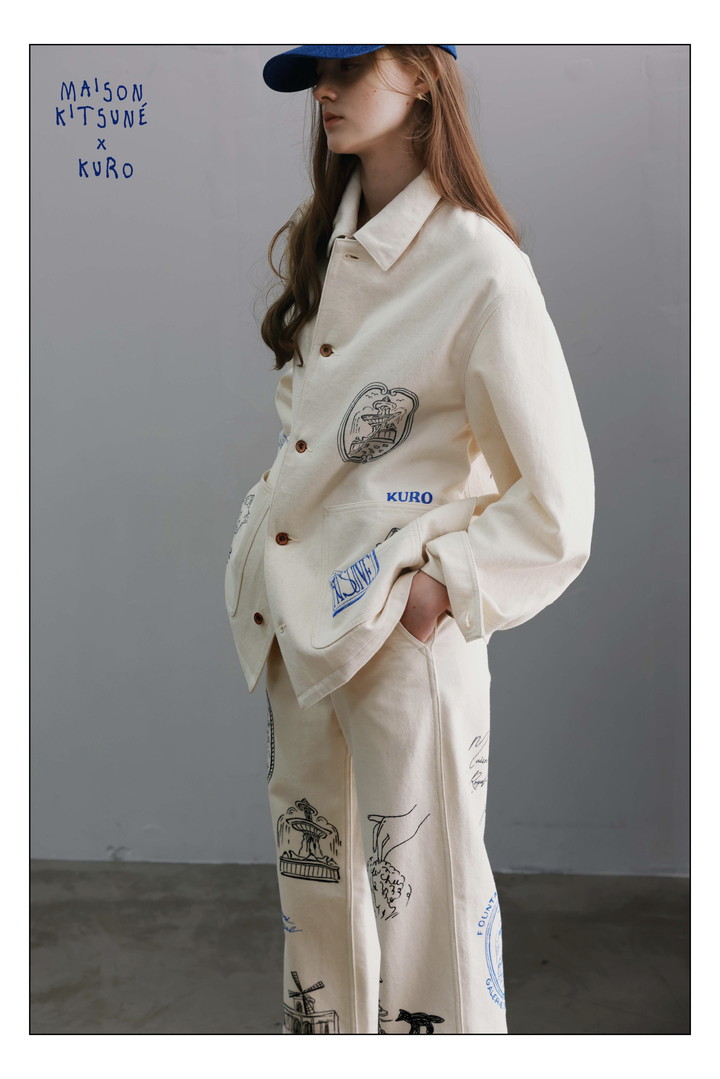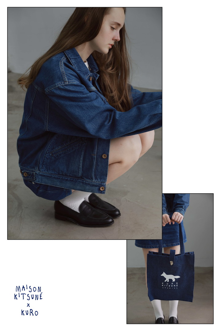 セルヴィッジデニムと伝統的な藍染で知られる岡山県・児島で一貫生産を行い、日本製プレミアムデニムの代表格として確立してきた《クロ》。その確かなものづくりに、《メゾン キツネ》のフレンチなムードが重なり、新たな表情が生まれた。