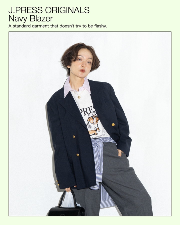 《J.プレス オリジナルス》のアイコンとも言えるブレザーは、オーセンティックなデザインが何よりも魅力。気を衒うことのないスタンダードな一着を持っていれば、飽きることなくながーく愛用できそう!! 少し大きめのサイズを選んでおけば、どことなくこなれた印象に!!