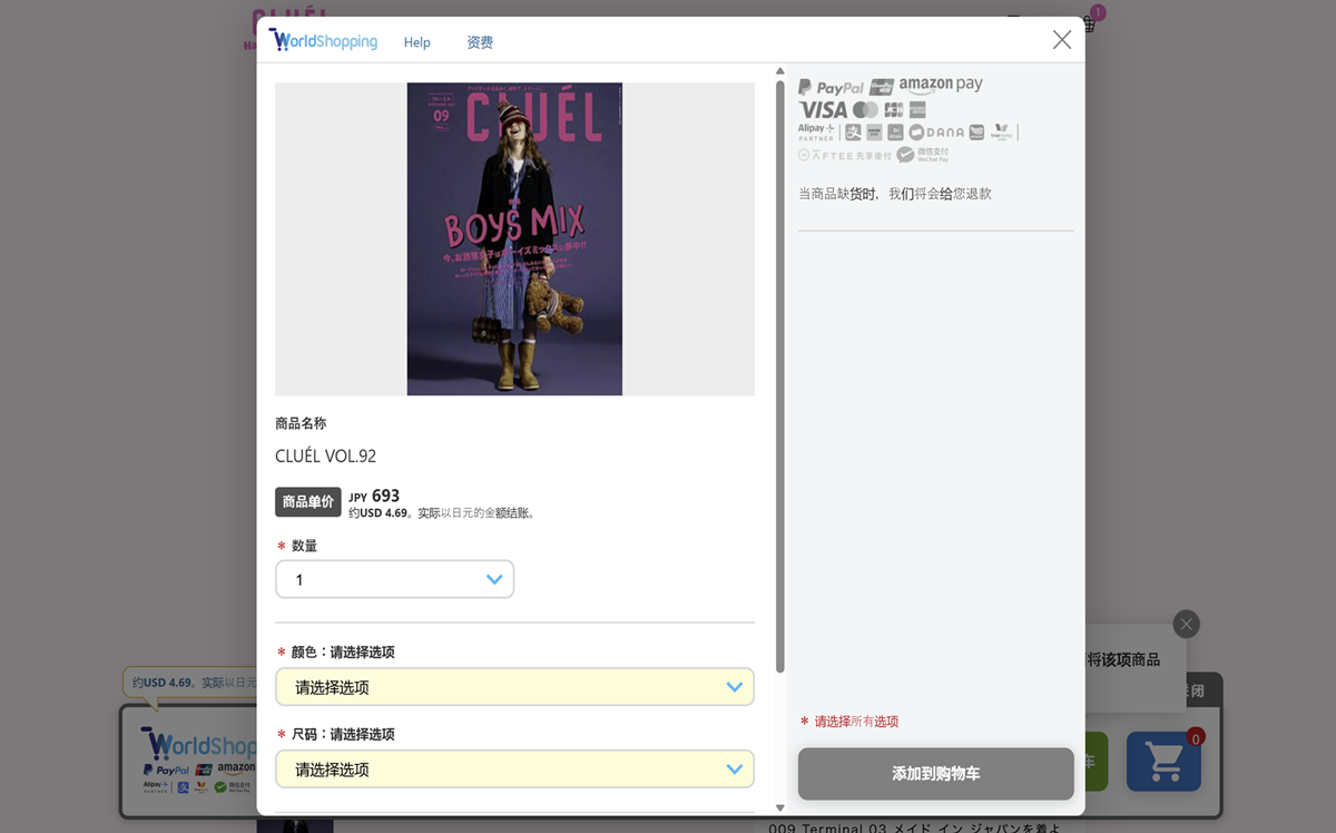 WorldShopping代替您购买商品,WorldShopping在收到您的订单后,将不再接受关于订单内容的任何更改,例如(取消订单、退货)等。