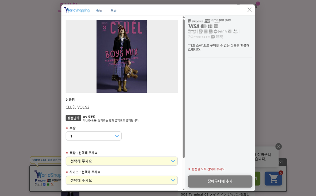 2. WorldShopping 장바구니에 원하시는 상품을 추가해 주세요.