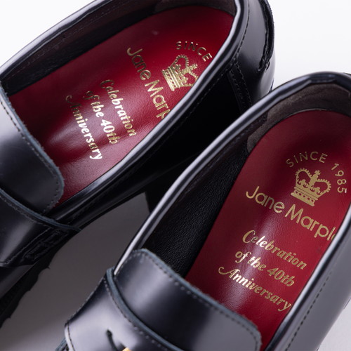 ブランド設立40周年を迎える《ジェーン・マープル》から、アニバーサリーイヤーを記念したペニーローファーが登場。アッパーには、きめ細やかな表情と柔らかな質感が特徴のレザーに、艶やかな光沢を生み出すガラス加工を施した上質なガラスレザーを使用。