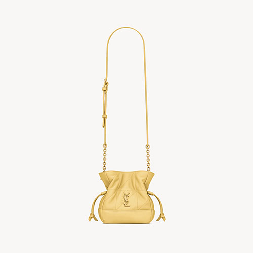 《サンローラン》の人気バッグ「ジェイミー」シリーズに、コンパクトな新型「ジェイミーショルダーポーチ」が登場。ラムスキンの柔らかく滑らかな質感に、ヴィンテージゴールドのカサンドラロゴが輝くデザインはそのままに、新たなシルエットになっている。今季新たに登場したものは、従来よりもコンパクトで軽量に、ロングレザーとチェーンが組み合わさった細身のクロスボディストラップで、サイドに施されたレザー製の絞り紐でフォルムを調整できるなど、より軽やかで機能的に進化したバッグに。ミニマルなサイズ感と上品な艶感が、ブランドならではのシックな装いを演出。