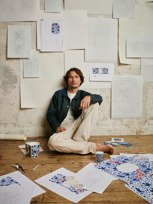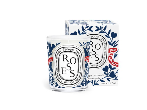 若手イラストレーター兼陶芸家のコンスタンタン・リアンによる、《ディプティック》のバレンタイン限定版デザインキャンドルが発売される。バレンタインデーにふさわしいローズの香りのキャンドルの入れ物には、ブルーの化粧土を用いた技法や、愛のシンボルを連想させる濃いブルーとレッドで飾られている。